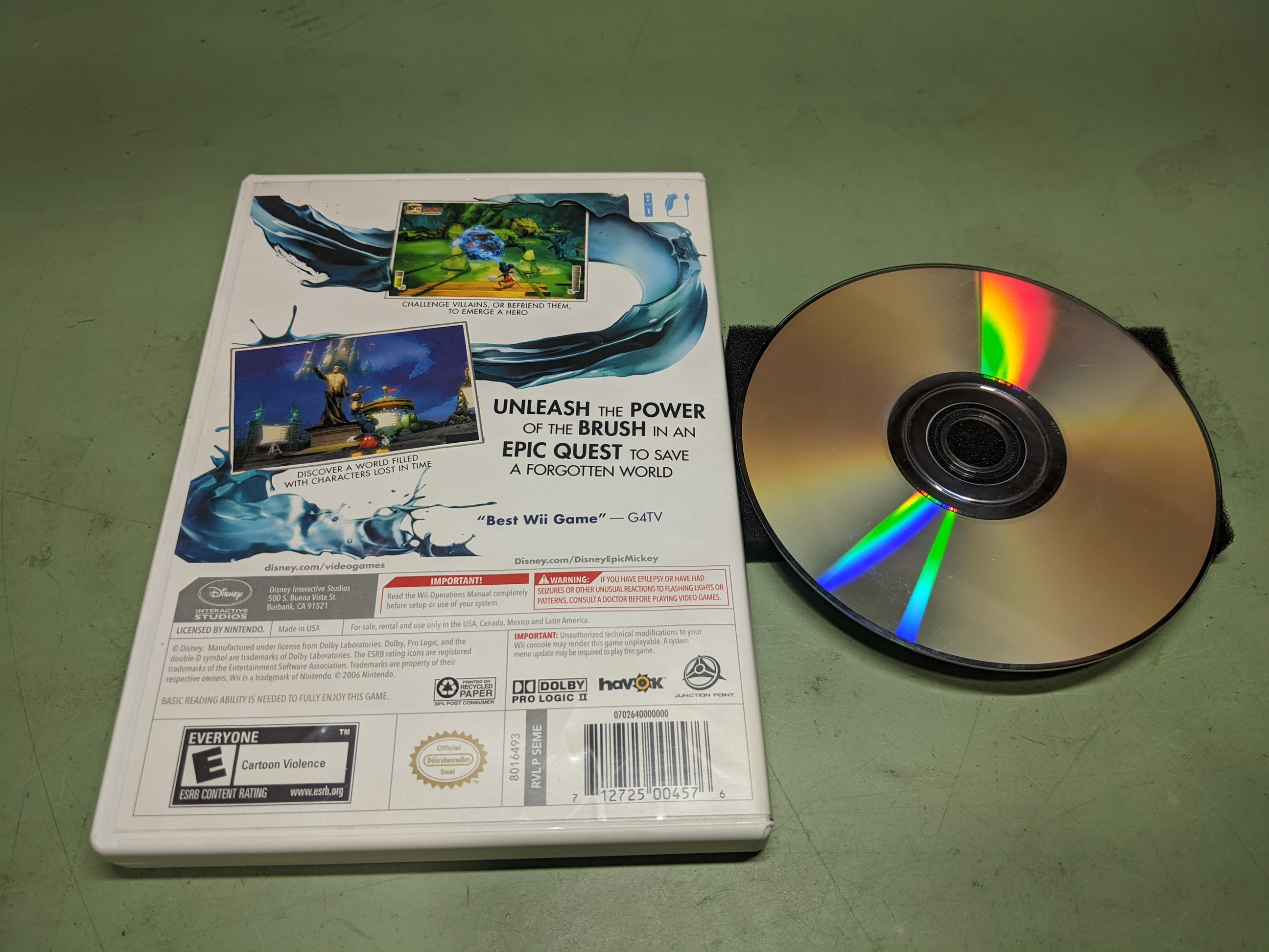 Epic Mickey Nintendo Wii Disk and Case