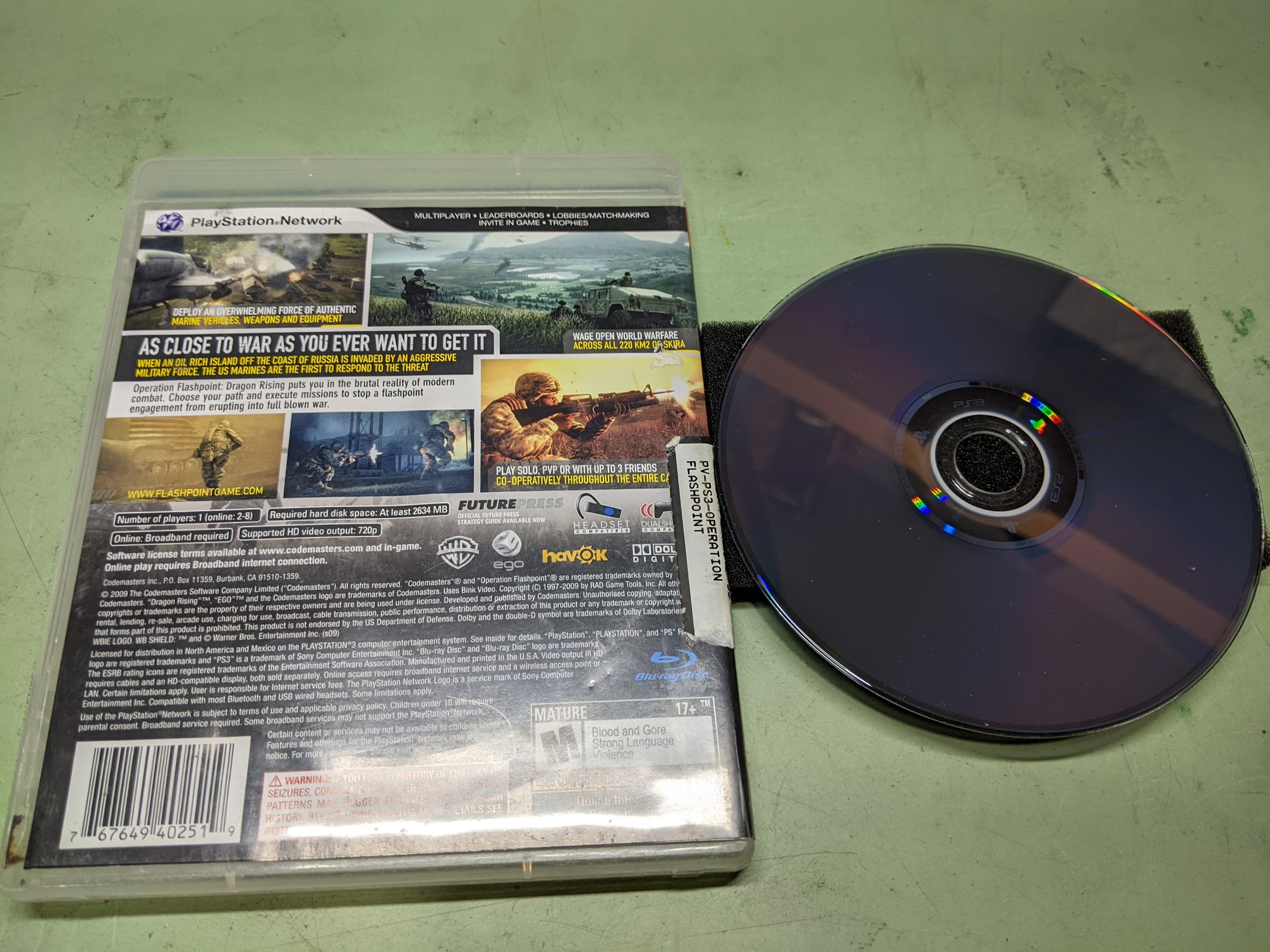 Operation Flashpoint: Dragon Rising Sony PlayStation 3 Disk and Case