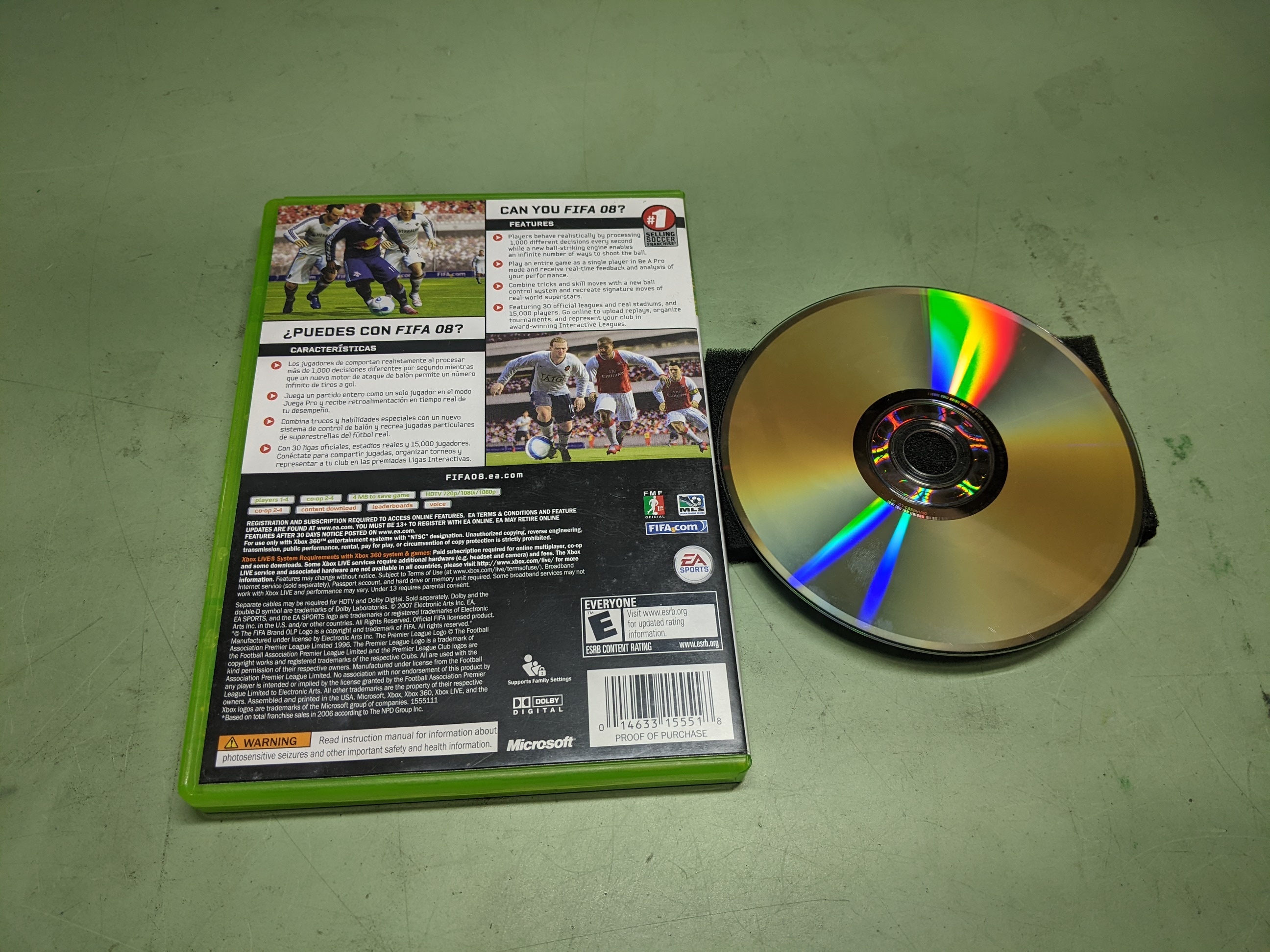 FIFA 08 Microsoft XBox360 Disk and Case