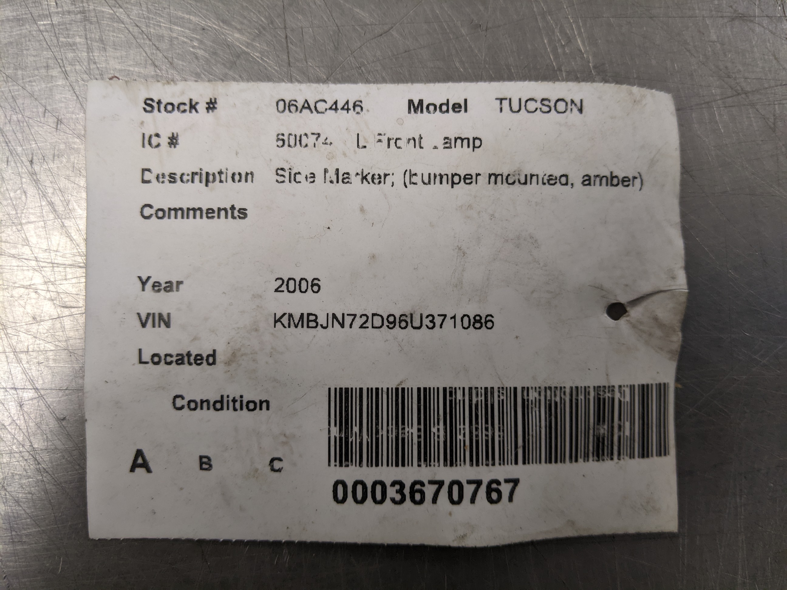 GTN156 Driver Left Side Marker For 05-09 Hyundai Tucson 2.4