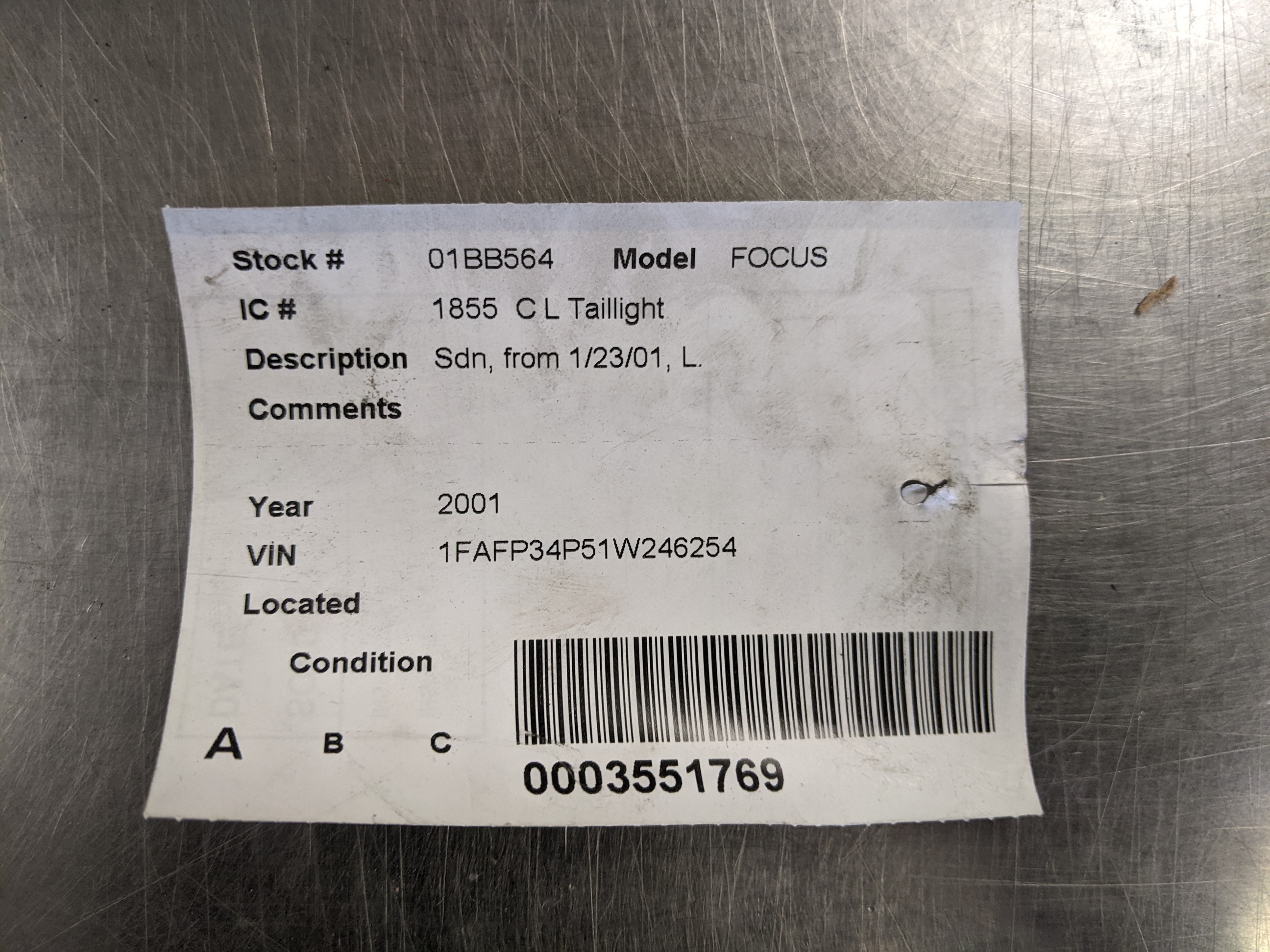 GTI411 Driver Left Tail Light For 00-01 Ford Focus 2.0