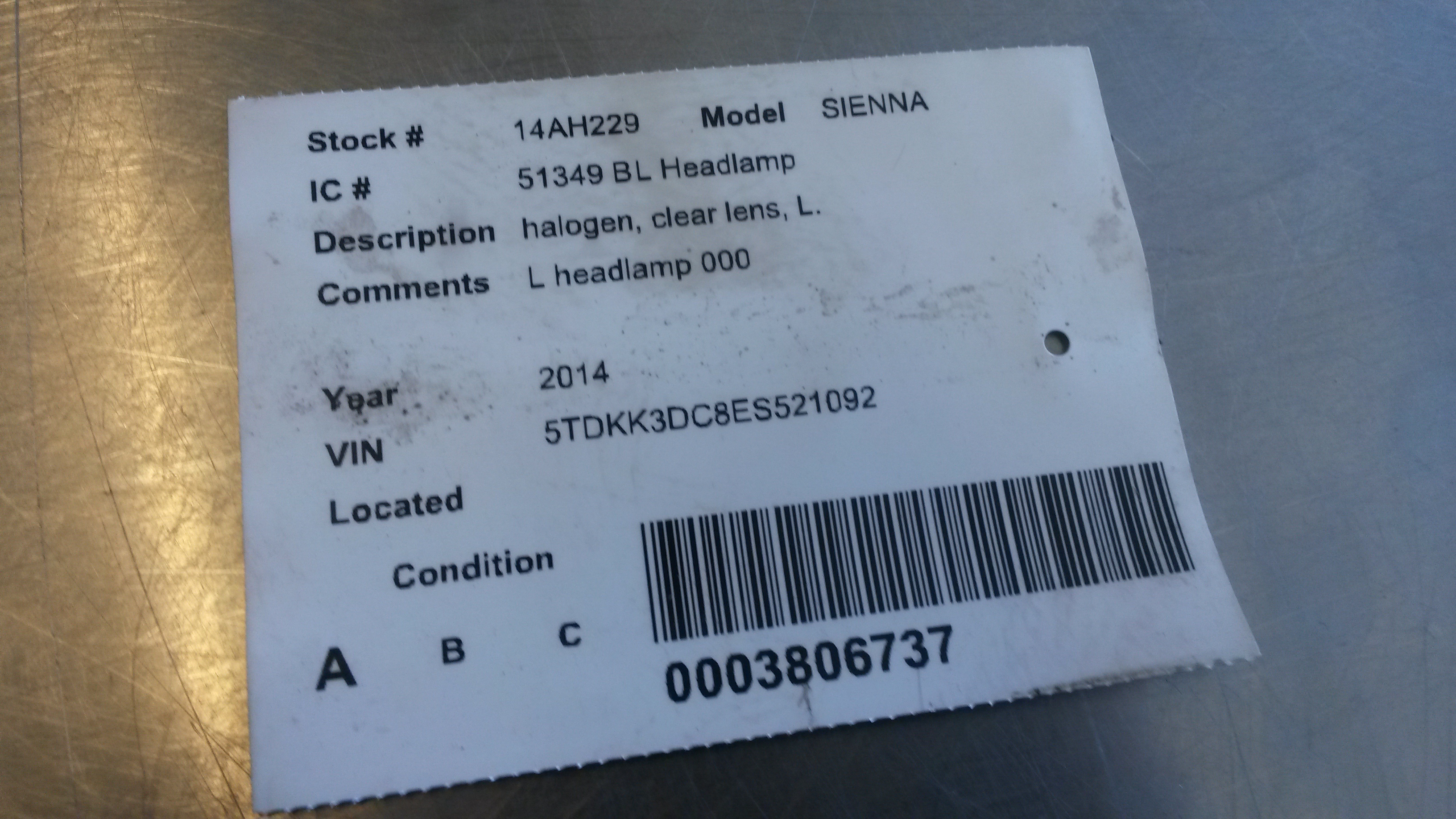 2014 Toyota Sienna L Mini Cargo Van 5-Door 3.5L 3456CC V6 GAS DOHC Naturally Aspirated
