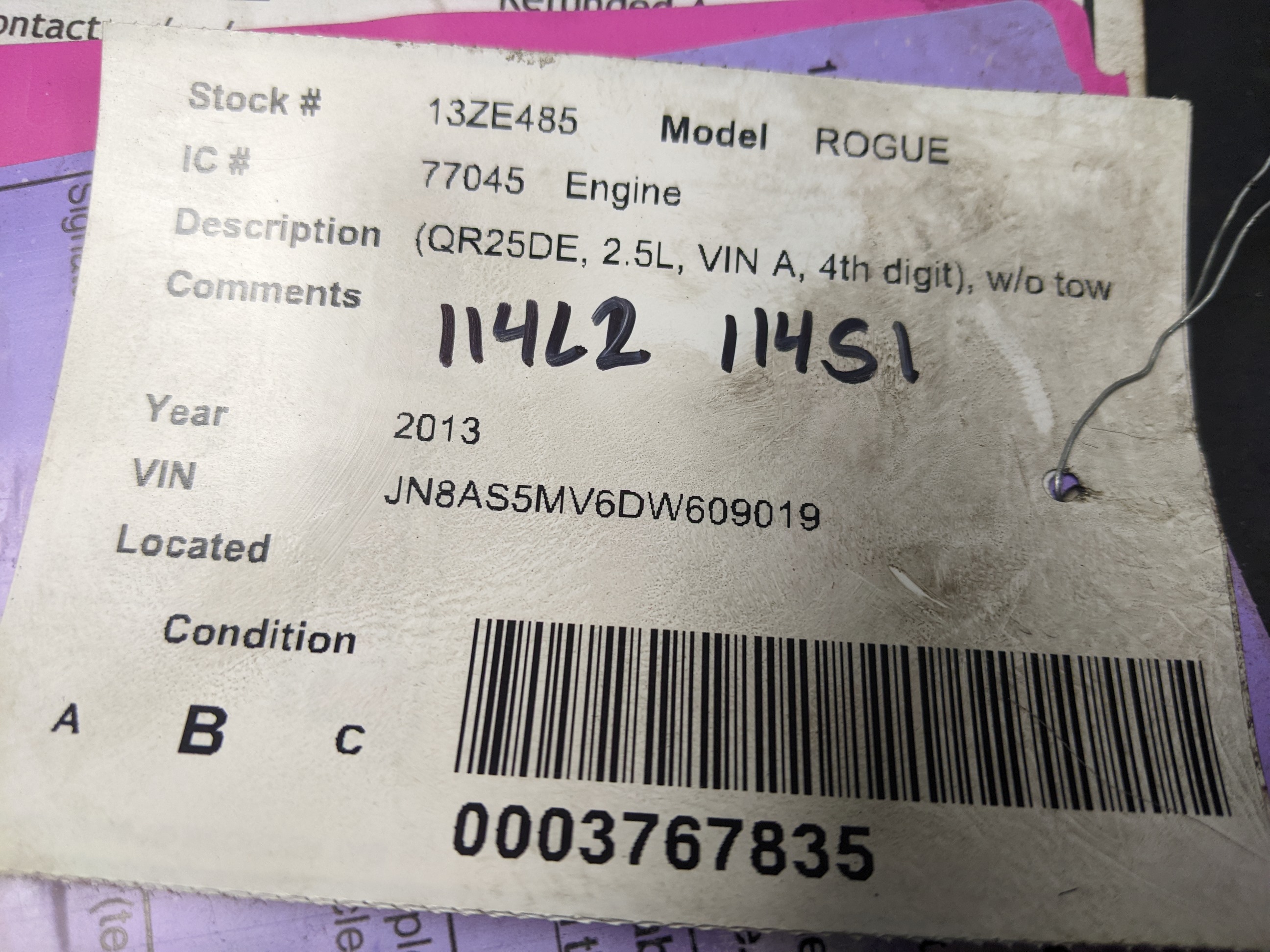 Nissan QR25-DE Federal Emissions, With Tow Package (Has Factory Engine Oil Cooler), Japan Built (1st Digit is J)Nissan Rogue 2009-2015 2.5L