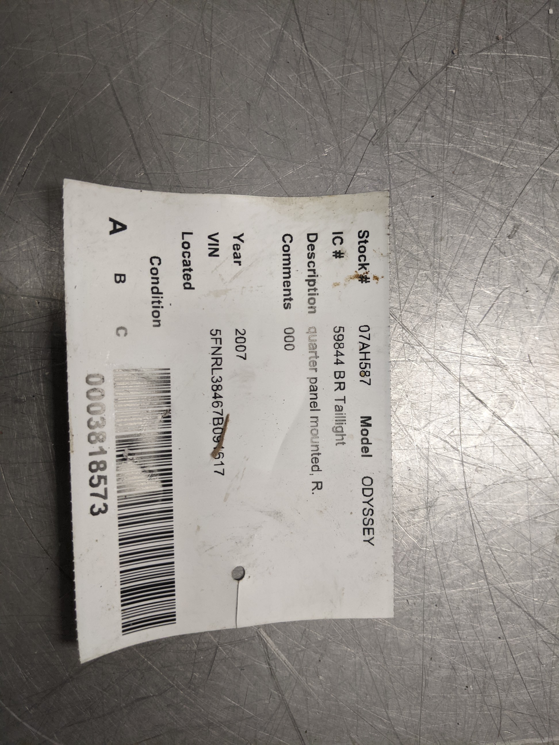 GSS206 Passenger Right Tail Light From 2007 Honda Odyssey 3.5