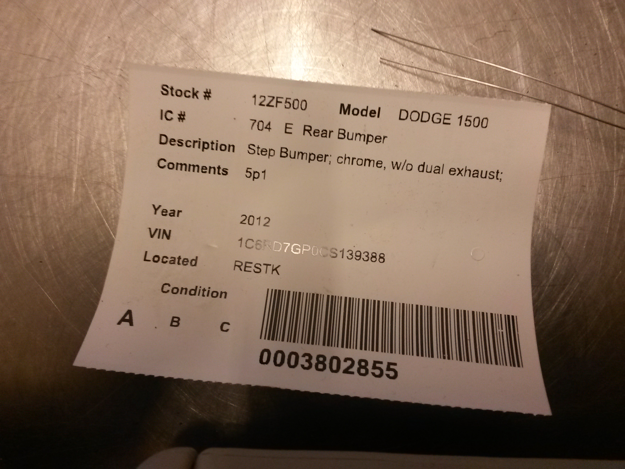 VIN: 1C6RD7GP0CS139388