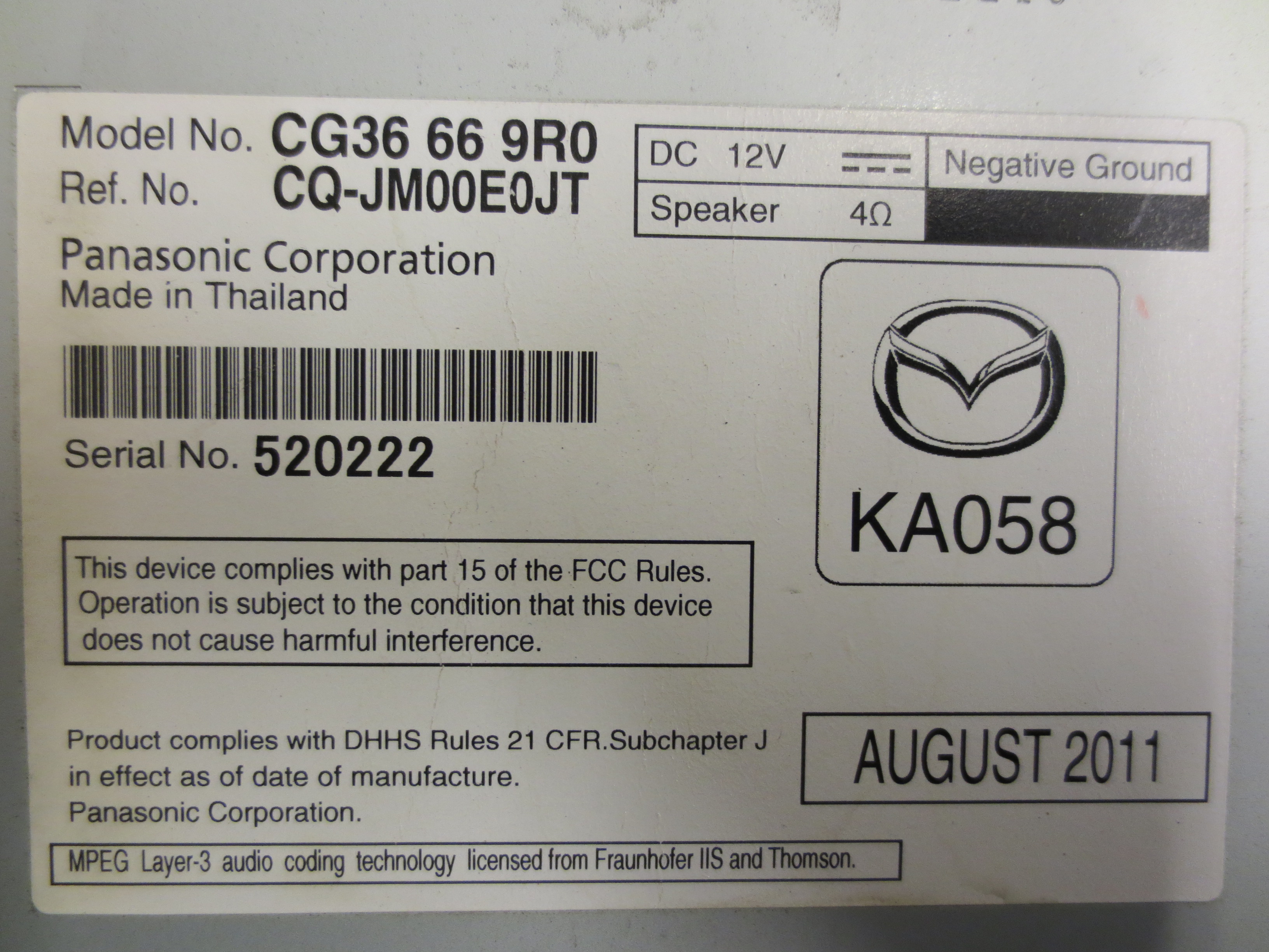 GSM628 Radio CD Player Tuner Receiver From 2012 MAZDA 5 2.5 CG36669RO