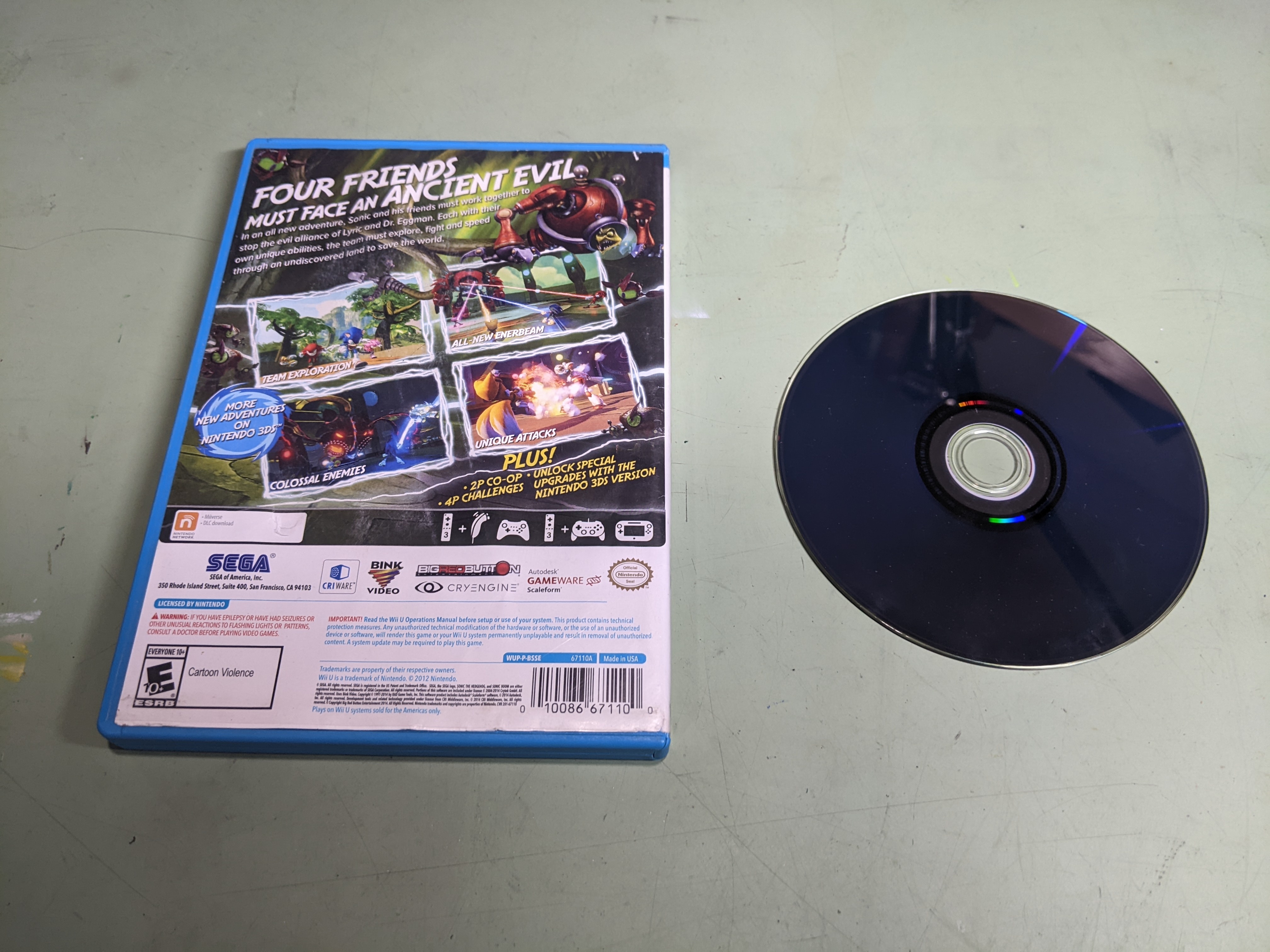 Sonic Boom: Rise of Lyric Nintendo Wii U Disk and Case
